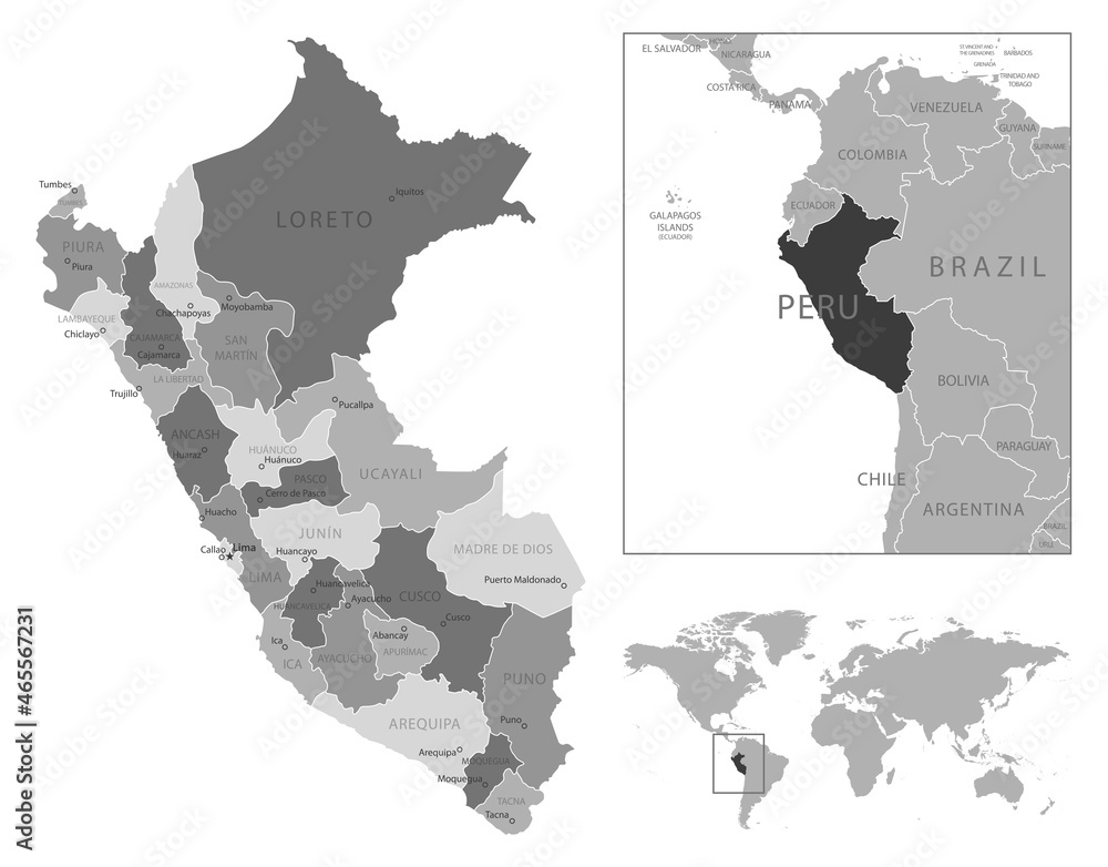 Peru highly detailed black and white map. Stock Vector | Adobe Stock