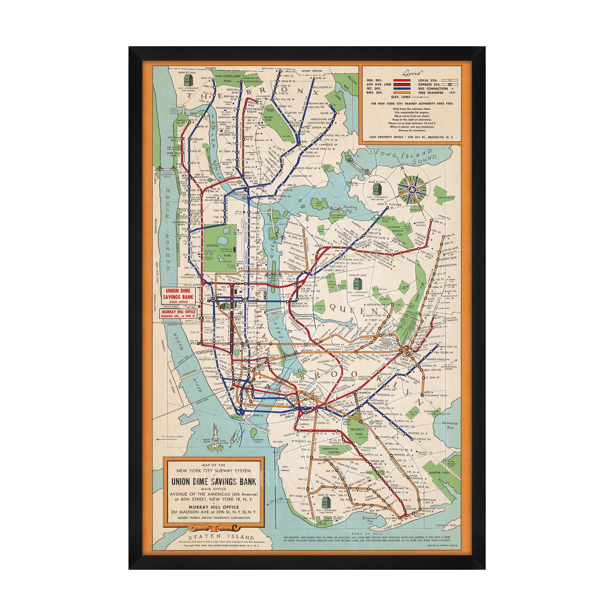 1954 New York City Subway System Map Framed Wall Art – Historic Prints